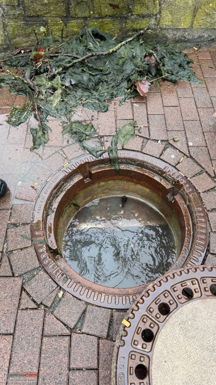 Aufgrund eines verstopften Abwasserkanals drohte der Große Teich überzulaufen. Durch uns wurde der Abwasserkanal wieder freigelegt.