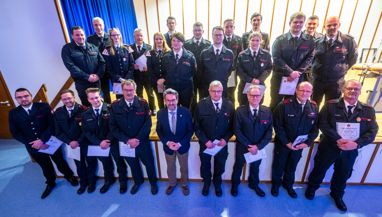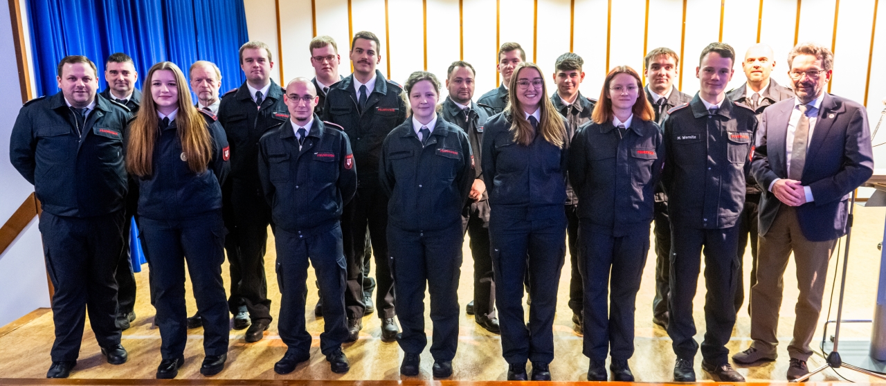 Beförderung zum Oberfeuerwehrmann: Fabian Kappe, Marvin Salzwedel, Fynn Hilgenkamp, Lara Rottwinkel, Christian Voswinckel, Nils Jeuring, Reiner Bröcking, Stefan Wüste, Gustav Danneel, Ida Maria Daners, Celine Vogel, Janette Prolingheuer, Tim Sievert;