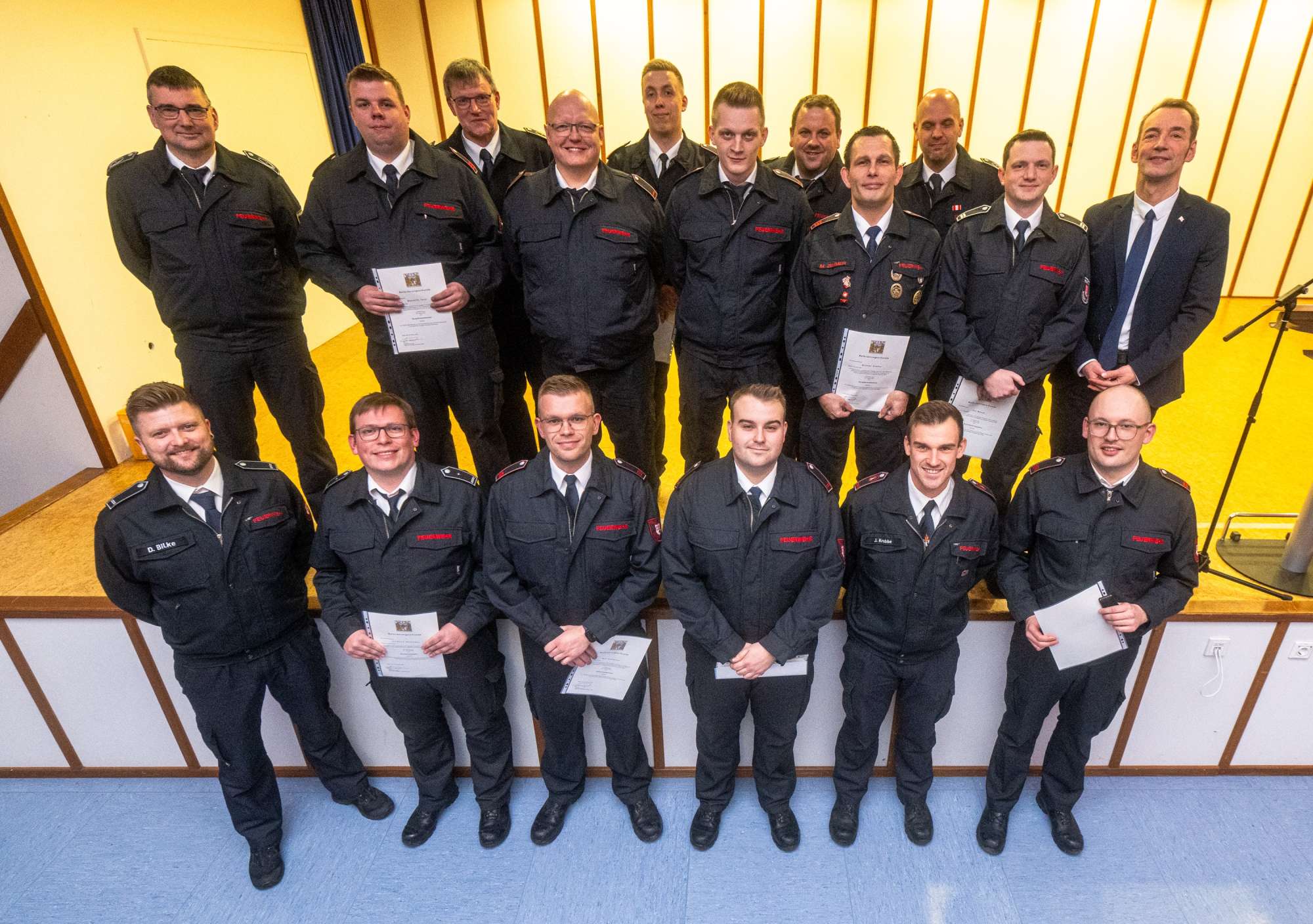 zum Hauptfeuerwehrmann: Marvin Lasar, Simon Kurz; zum Unterbrandmeister: Robin Uebach, Jonas Mattheus, Reiner Bröcking, Jan Ladouceur, Sebastian Neuperger, Lukas Fricke, Thies Klüsener, Jannis Würfel;