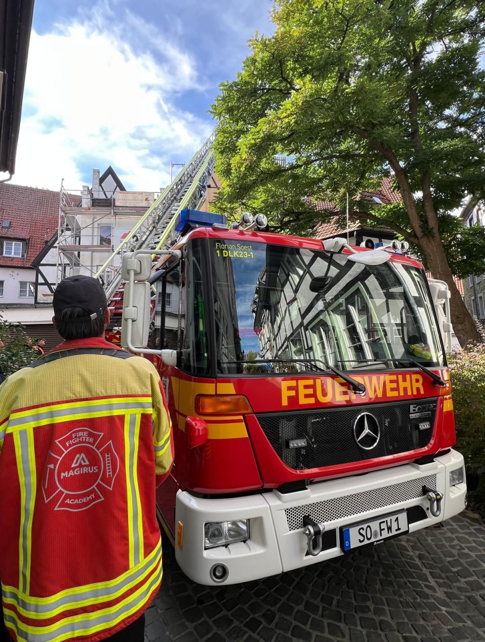 Besonderes Augenmerk lag dabei auf den Herausforderungen, die die Stadt Soest mit ihrer engen Altstadtbebauung mit sich bringt. Historische Straßenführungen, schmale Gassen und enge Innenhöfe erfordern von den Maschinisten höchste Präzision und ein ausgeprägtes Fingerspitzengefühl im Umgang mit der Drehleiter.