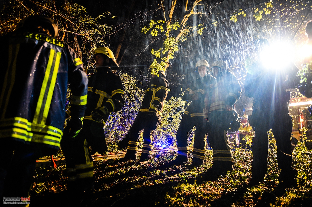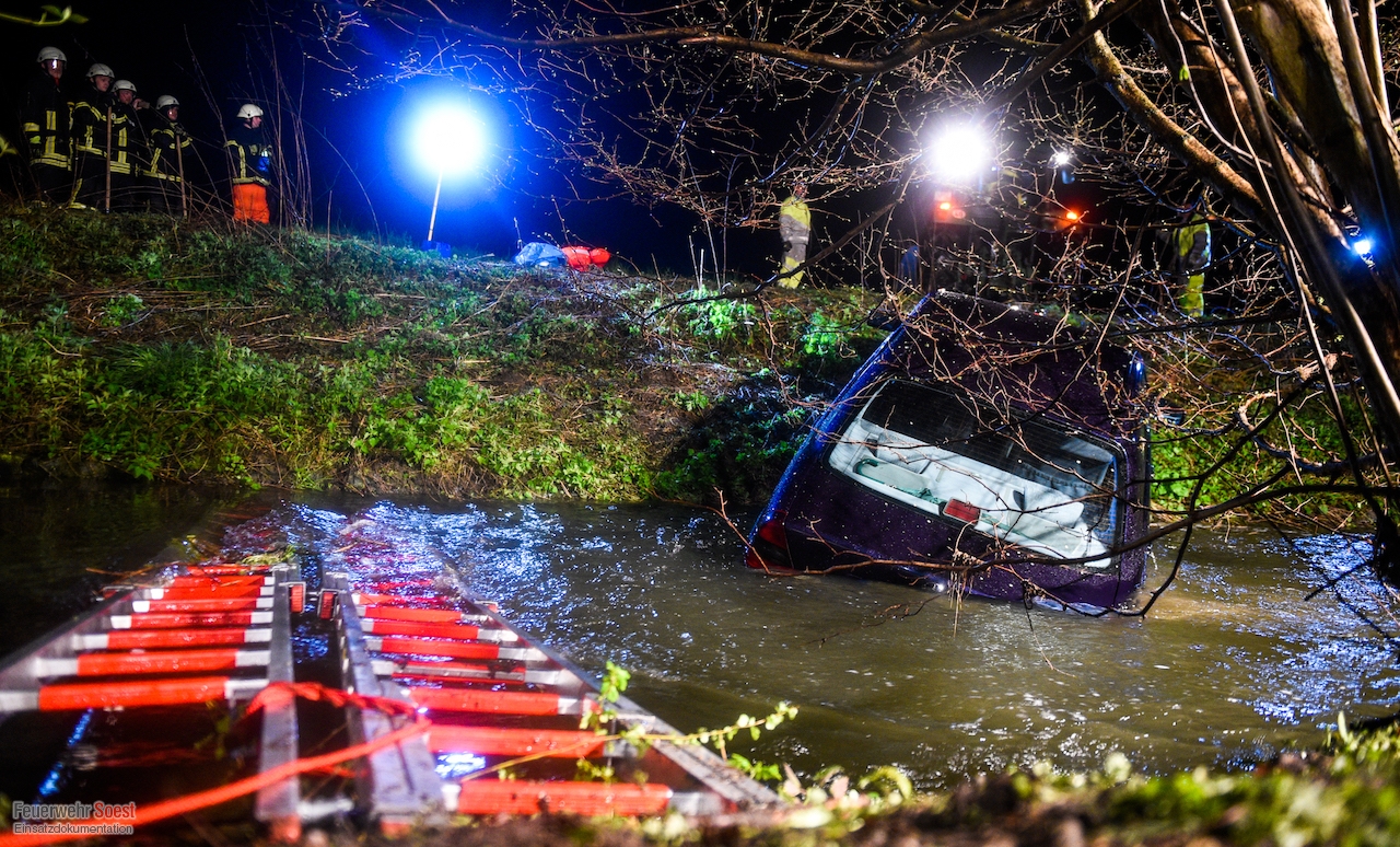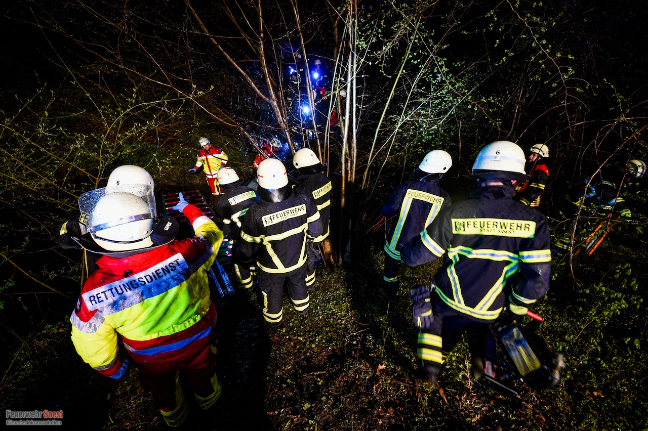Ein PKW fuhr rückwärts in den Soestbach, dabei wurde der Fahrer in seinem Fahrzeug eingeschlossen. Der Fahrer wurde durch die Feuerwehr befreit und an den Rettungsdienst übergeben. Anschließend unterstützten wir bei der Bergung des Fahrzeugs aus dem Soestbach.