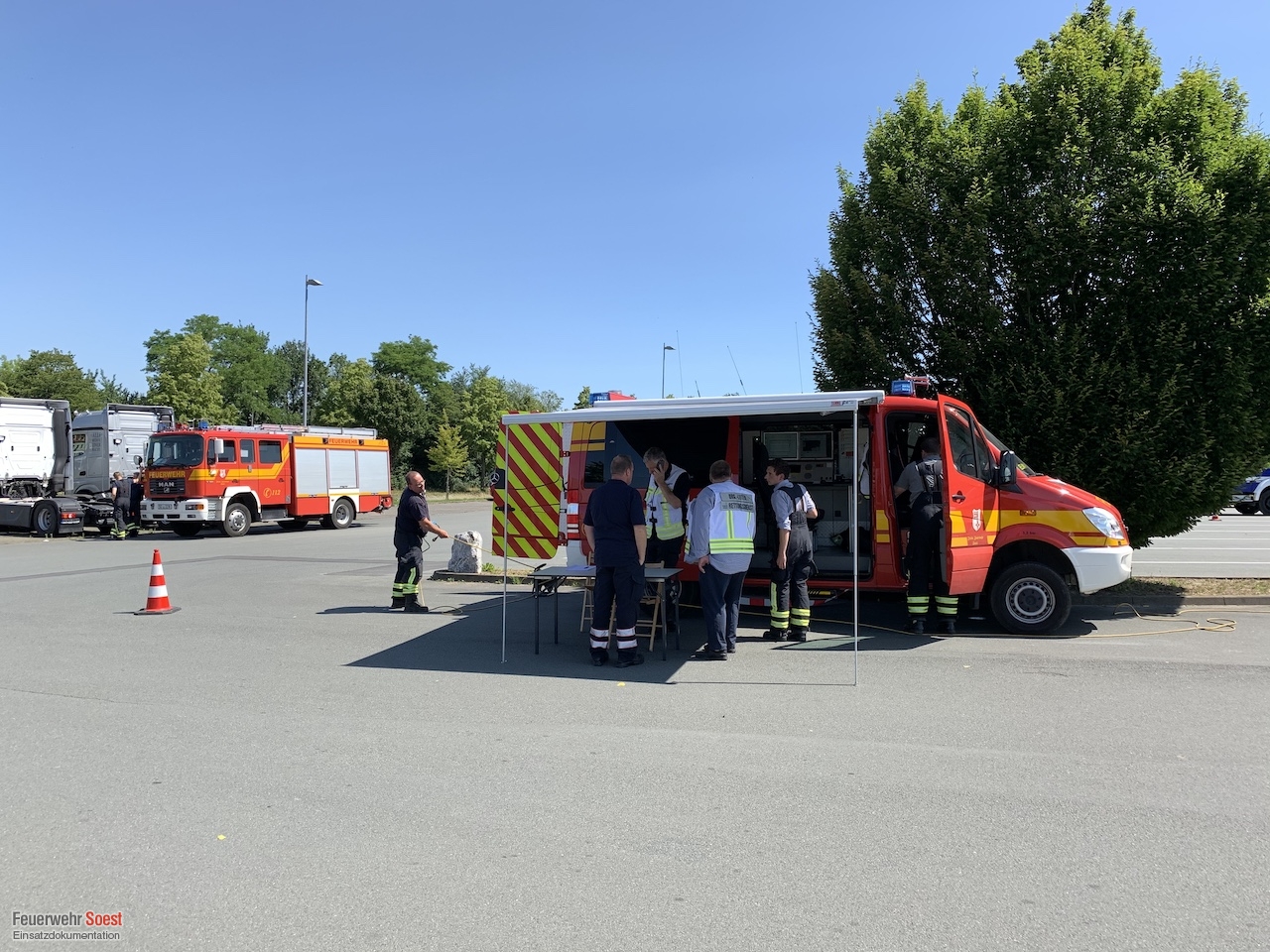 Nach einem Verkehrsunfall auf der BAB 44 in Werl kam es zu einem längeren Stau. Aufgrund der hohen Außentemperaturen wurden mehrere Betreuungseinheiten der Hilfsorganisationen aus dem ganzen Kreis Soest alarmiert. Diese sollten die wartenden Autofahrer mit Getränken versorgen. Um so einen Einsatz zu koordinieren, treffen sich vorerst alle alarmierten Einheiten in einem sogenannten Bereitstellungsraum. Dieser Bereitstellungsraum wurde in Soest eingerichtet und wir sollten dessen Führung übernehmen. Da der Verkehr dann allerdings abfließen konnte, mussten die Betreuungseinheiten nicht mehr aktiv werden.