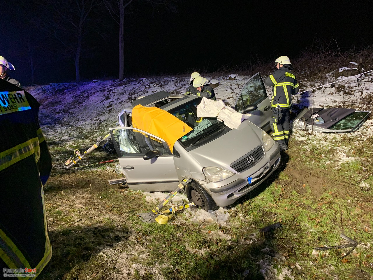 A44 bei Soest: Mehrere Schwerverletzte bei Unfall - Feuerwehr rettet Mann und Frau