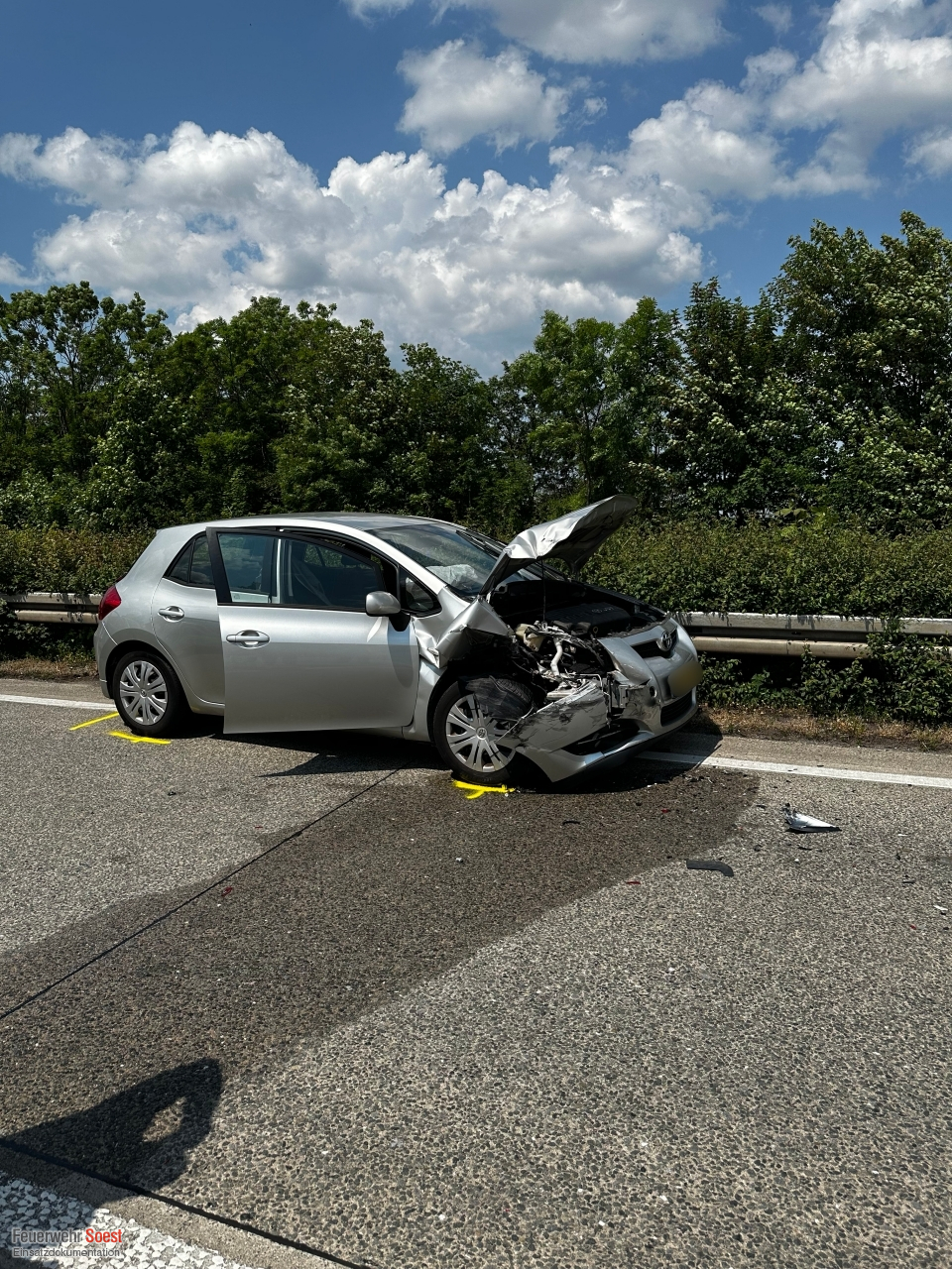 Bei einem Verkehrsunfall zwischen zwei Pkw wurden drei Personen leicht verletzt. Die Personen wurden vom Rettungsdienst in umliegende Krankenhäuser transportiert. Unsere Maßnahmen beschränkten sich auf das Absichern der Einsatzstelle und Reinigung der Fahrbahn.