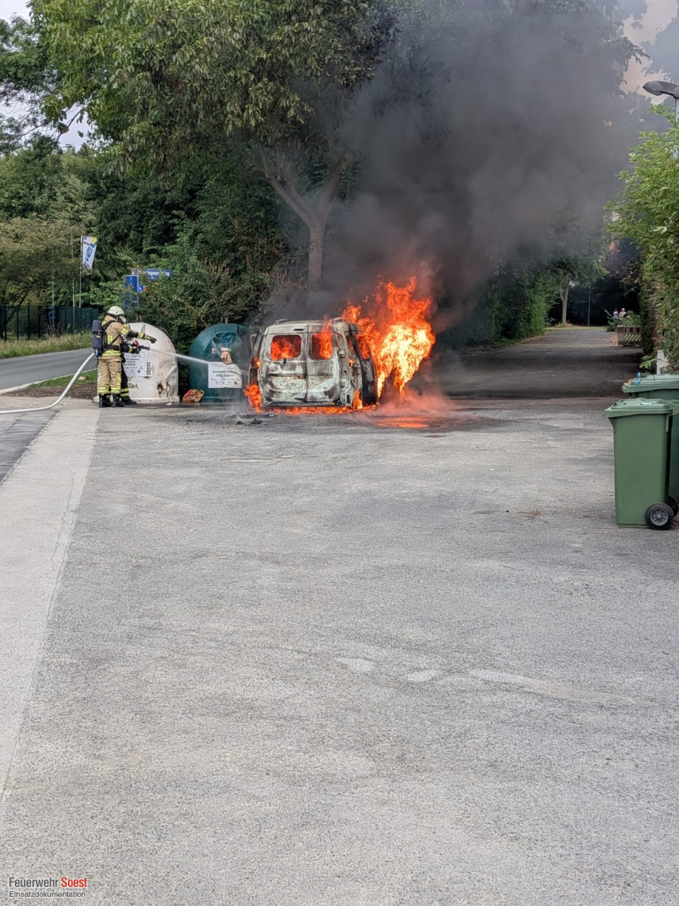 Ein brennender Pkw wurde von einem Trupp unter schwerem Atemschutz abgelöscht.